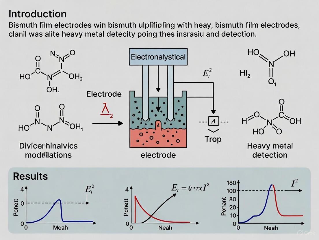 Bismuth film electrodes represent a significant advancement in heavy metal monitoring technology, offering an environmentally friendly alternative to traditional mercury-based electrodes while maintaining excellent analytical performance. Their compatibility with portable instrumentation makes them ideally suited for both laboratory analysis and field deployment, addressing the critical need for monitoring heavy metals in environmental and biomedical contexts. The ongoing development of advanced bismuth composites with enhanced antifouling properties further expands their application to complex matrices such as biological fluids and wastewater. As research continues to refine these sensors and develop standardized protocols, bismuth-based electrodes are poised to play an increasingly vital role in safeguarding environmental health and protecting human populations from the adverse effects of heavy metal exposure.