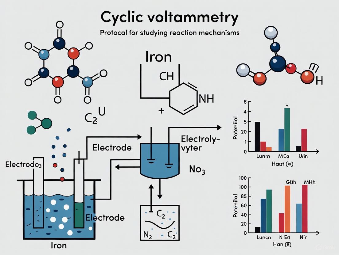 This article provides a comprehensive guide for researchers and drug development professionals on applying cyclic voltammetry (CV) to elucidate complex reaction mechanisms. It covers foundational electrochemical principles, step-by-step methodological protocols for probing coupled chemical reactions (EC mechanisms), and advanced troubleshooting for common experimental pitfalls. The guide also details validation strategies, including the integration of CV with complementary techniques like chronoamperometry and DPPH assays, to ensure robust and interpretable data. By synthesizing foundational knowledge with practical optimization and validation frameworks, this protocol aims to enhance the reliability and mechanistic insights of electrochemical studies in pharmaceutical and synthetic chemistry.