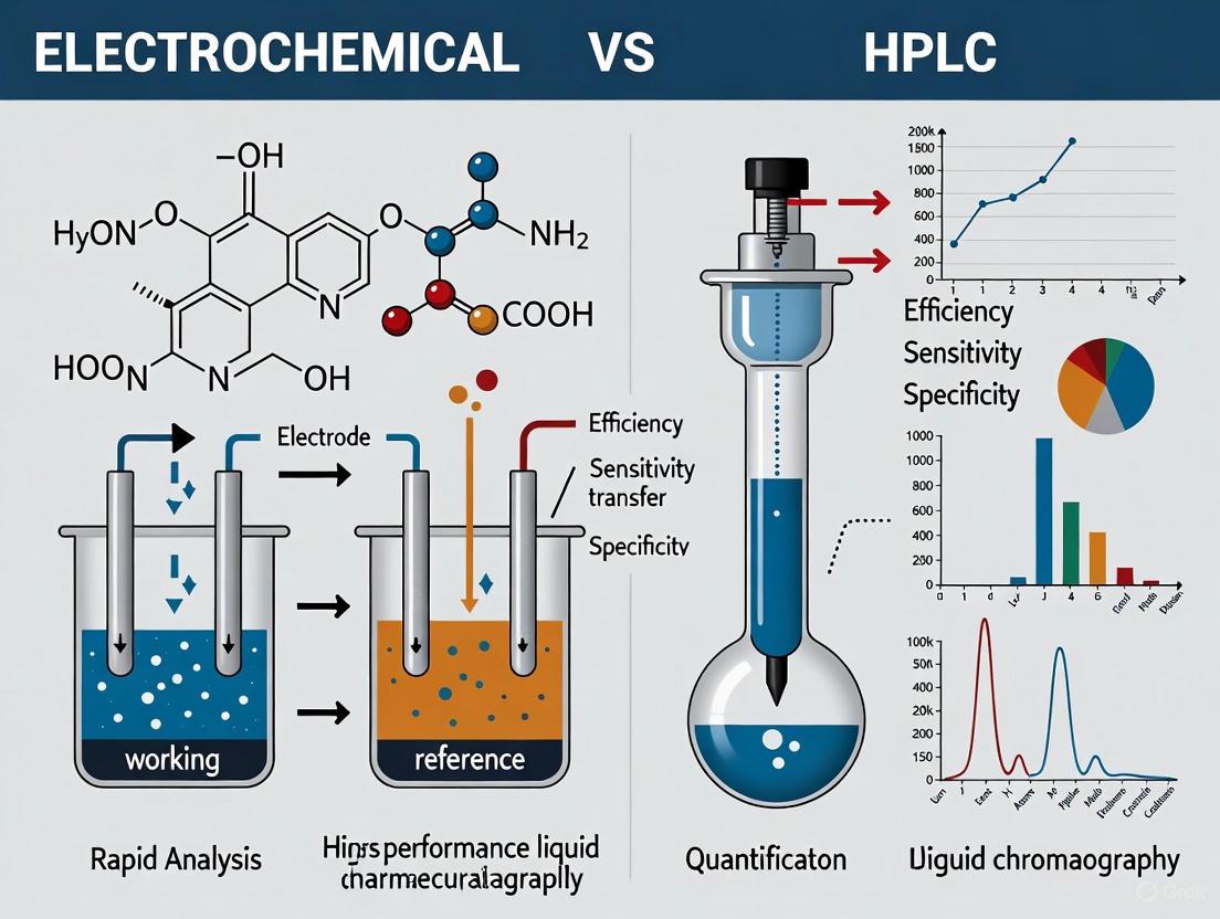 The selection between HPLC and electroanalysis requires a nuanced understanding of their performance across key operational metrics. The table below provides a structured comparison.