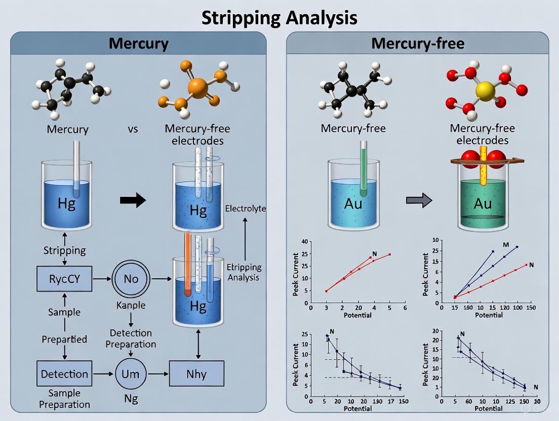 Mercury is a naturally occurring element that poses significant health risks and environmental challenges. Its toxicity is well-established; exposure to mercury—even in small amounts—can cause serious health problems, affecting the nervous, digestive, and immune systems, as well as lungs, kidneys, skin, and eyes [1]. The World Health Organization (WHO) classifies mercury among the top ten chemicals of major public health concern [1]. In analytical chemistry, particularly in stripping analysis for trace metal detection, mercury-based electrodes have been historically valued for their exceptional electrochemical properties, including high sensitivity, reproducibility, and wide cathodic potential range. However, the inherent toxicity of mercury has driven the scientific community to develop safer, mercury-free alternatives without compromising analytical performance. This review objectively compares these approaches within the context of analytical reproducibility in stripping analysis research, providing scientists with evidence-based guidance for method selection.